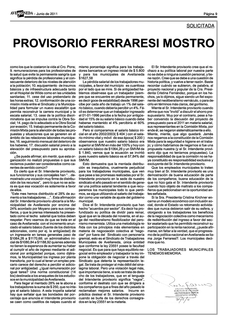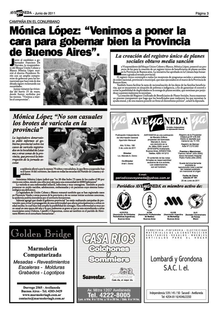edición mes de JUNIO de 2011 - año XV nº 190.