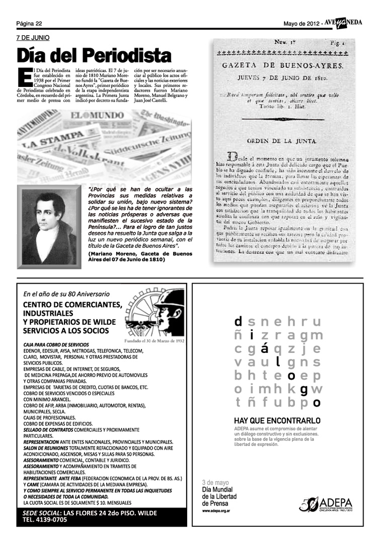 edición mes de MAYO de 2012 - año XVI nº 201.